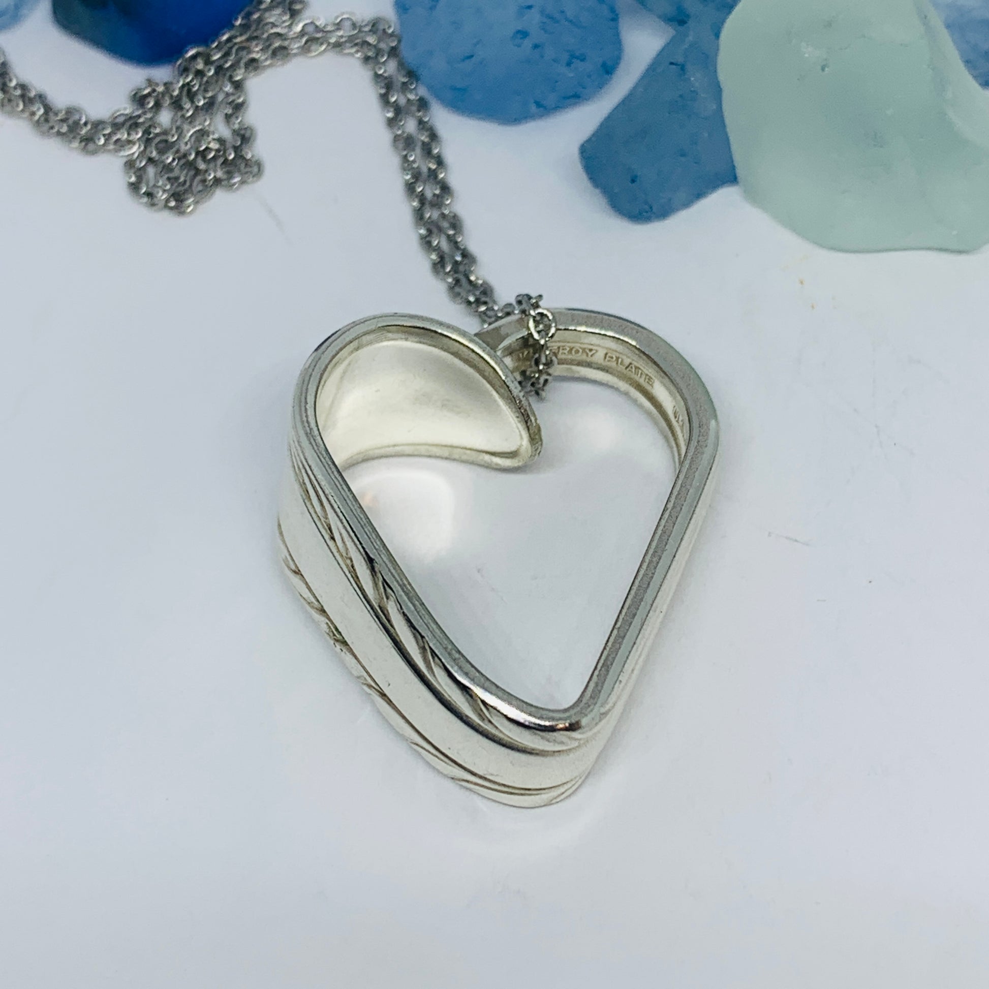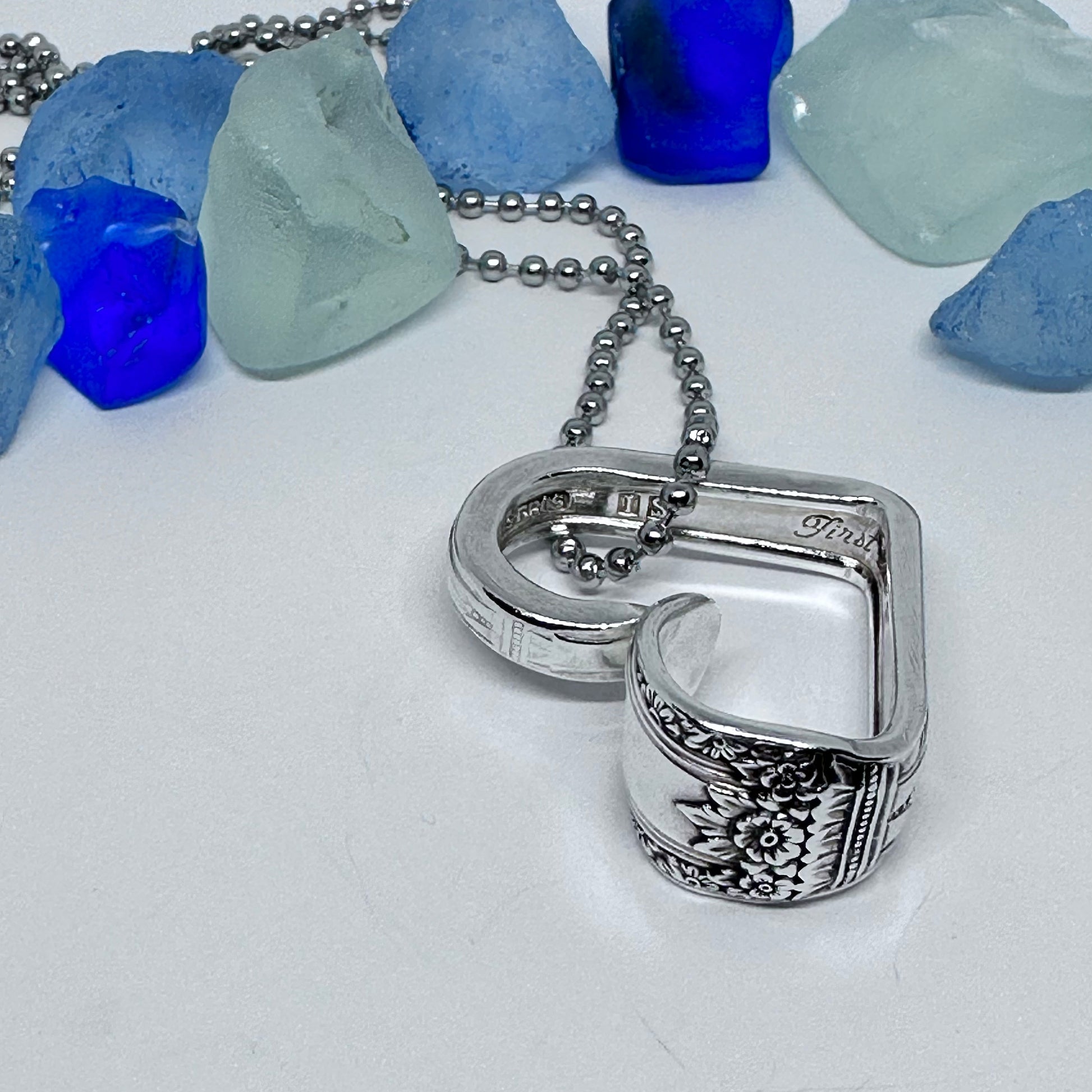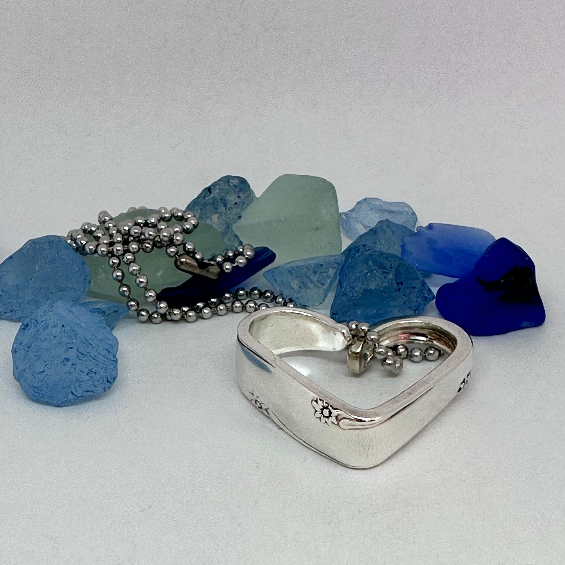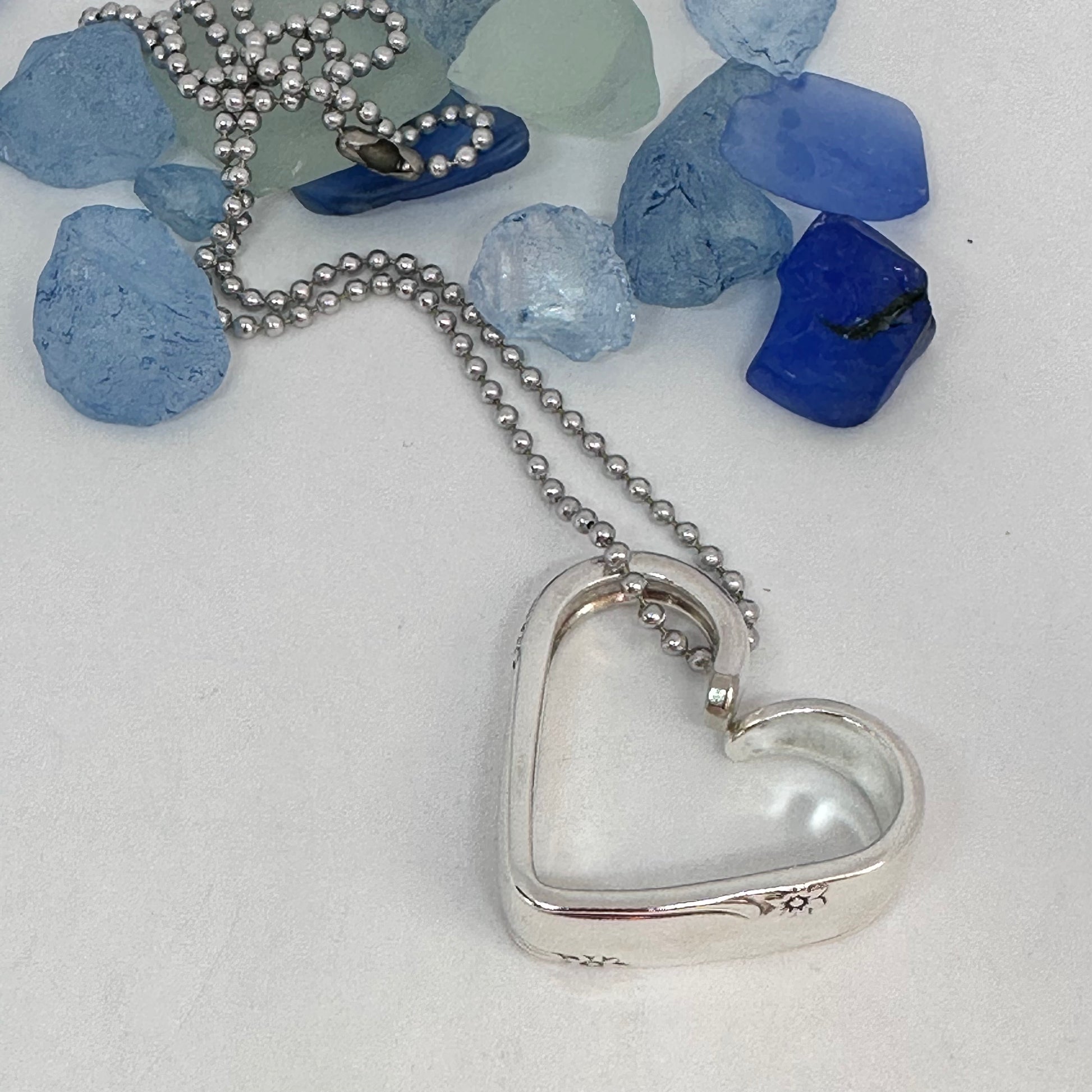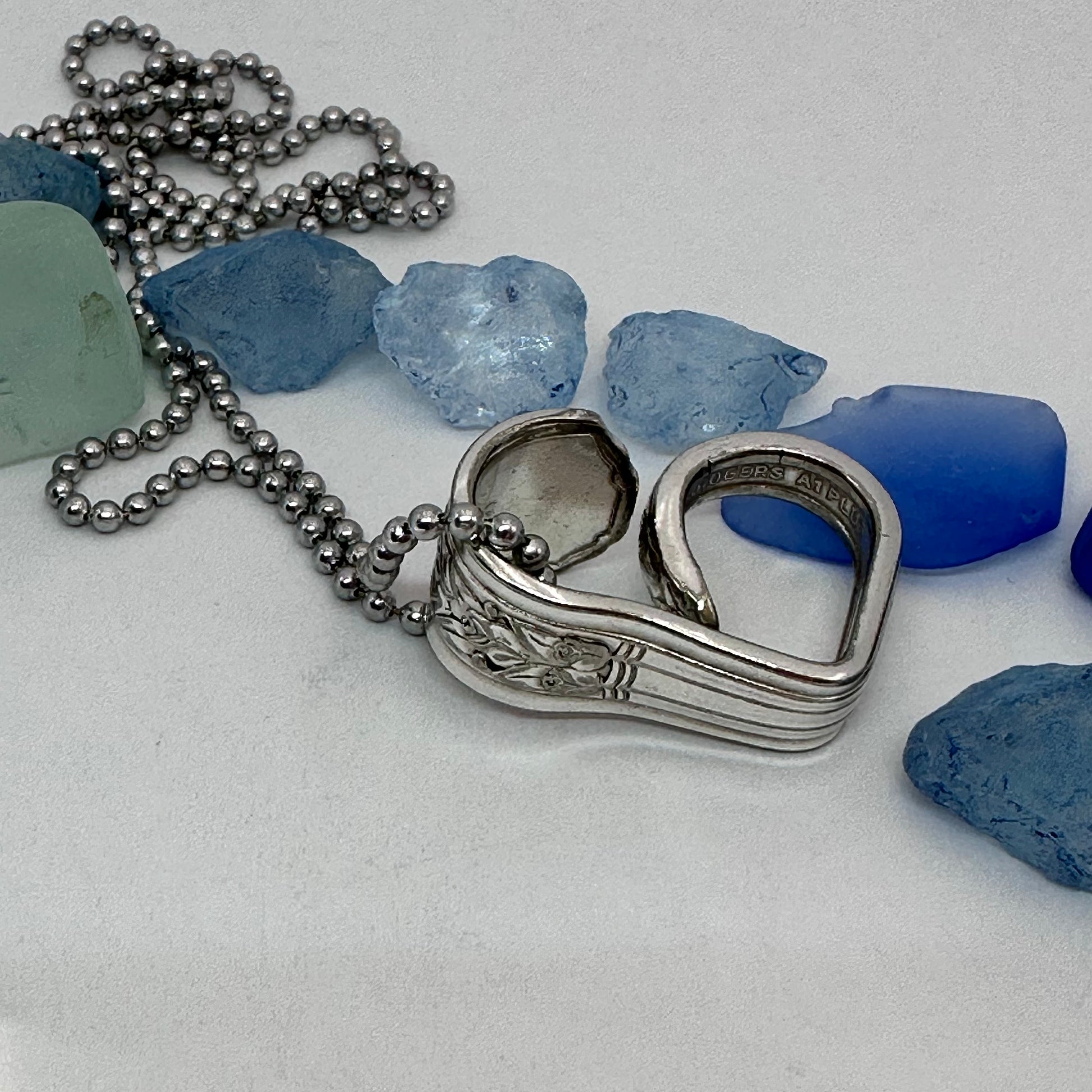 This listing is for one heart shaped vintage silverware pendant necklace on a 24” stainless steel ball chain, key ring or just put in your pocket for a pocket full of love!