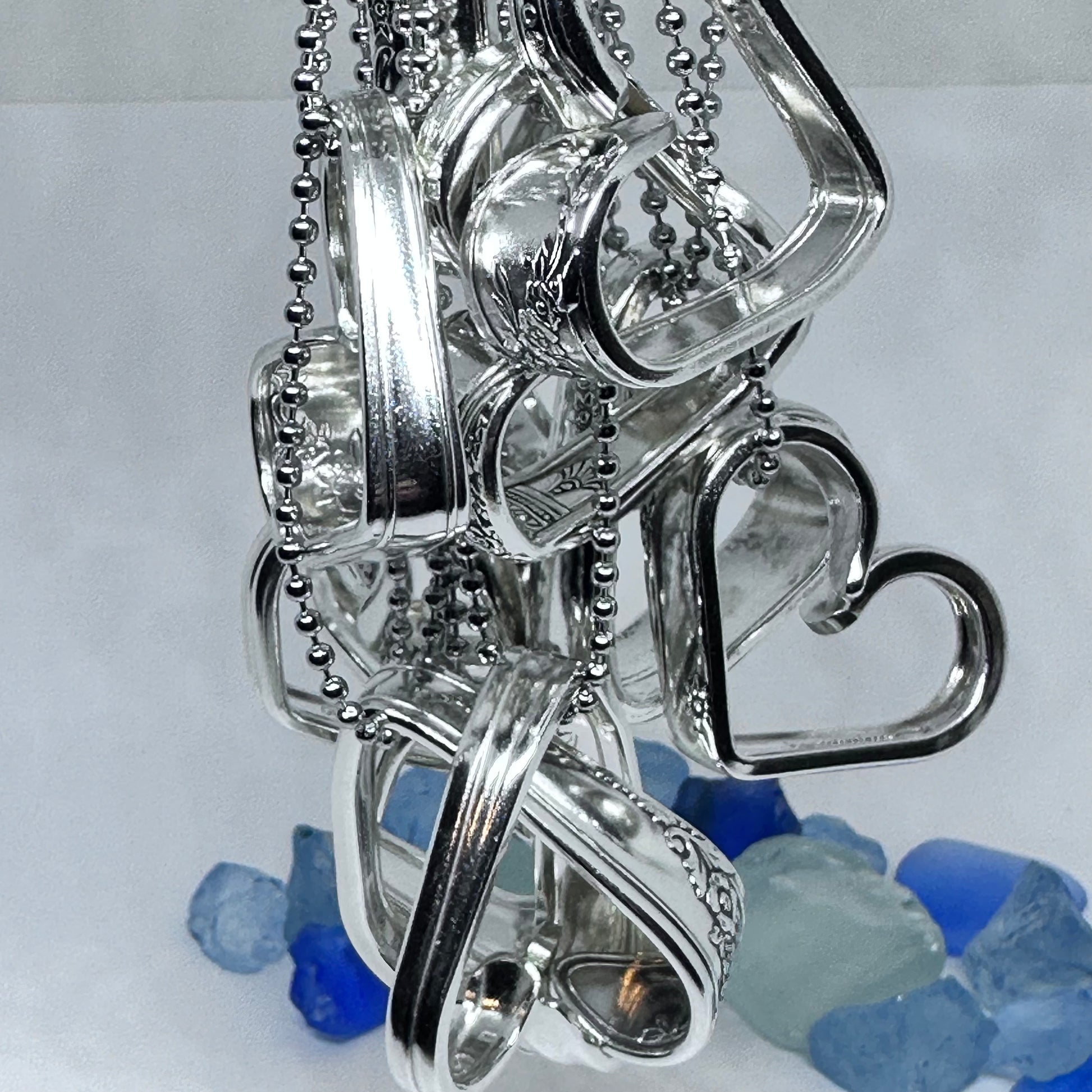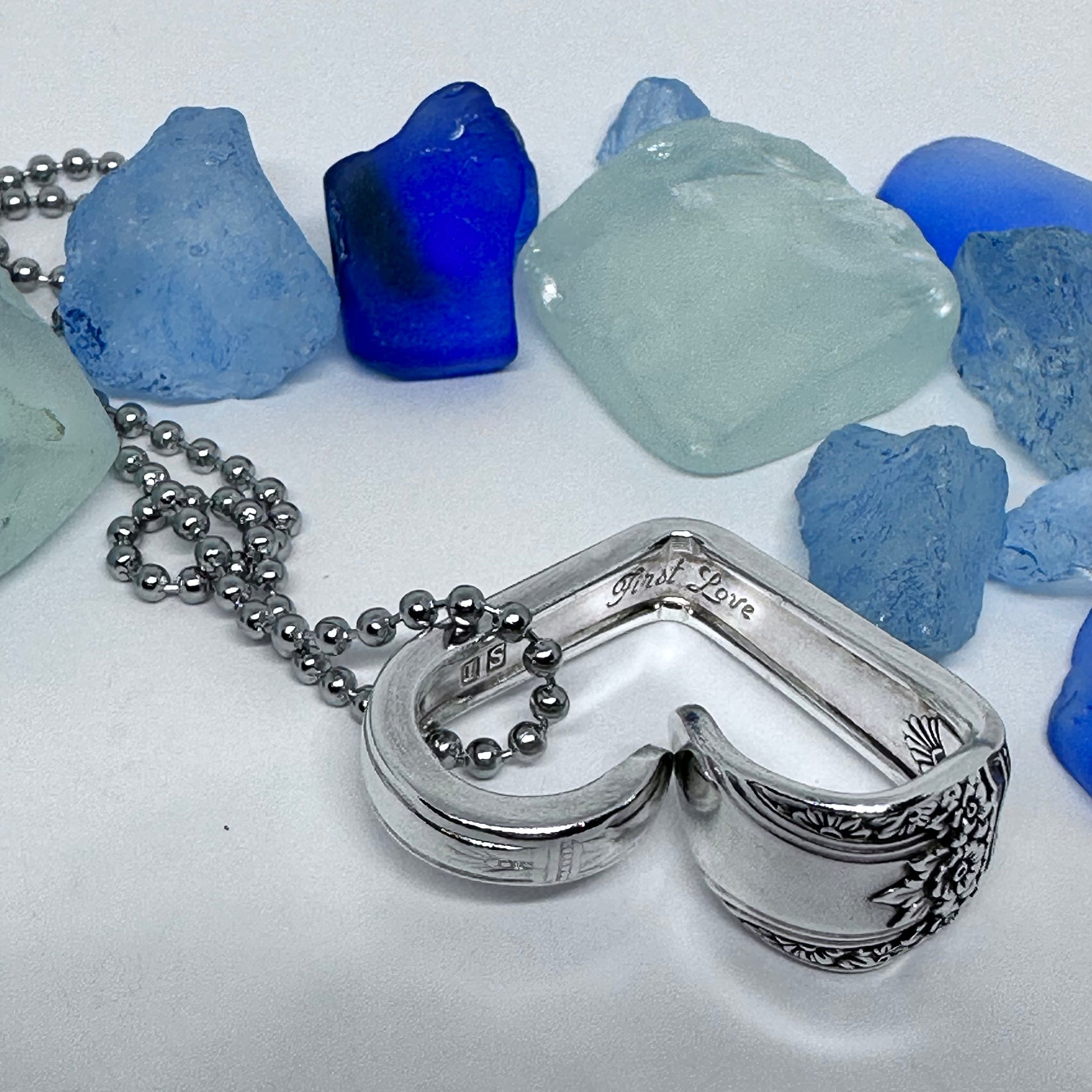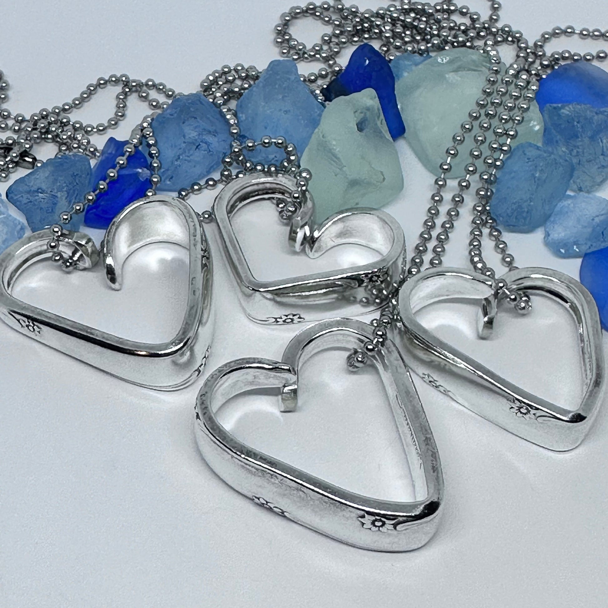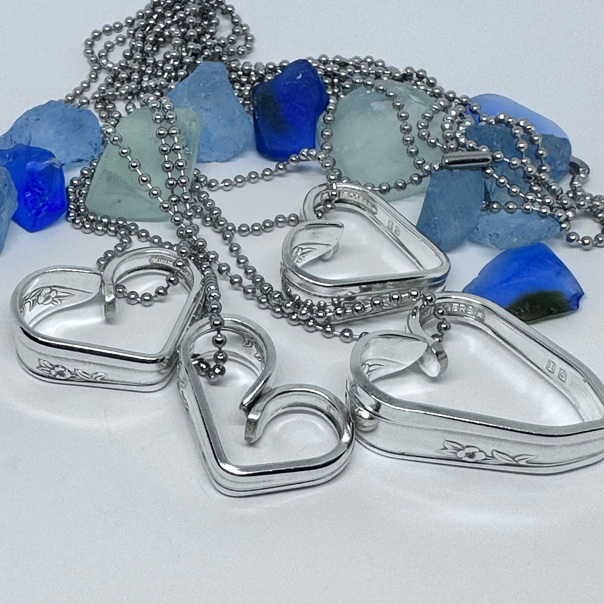 This listing is for one heart shaped vintage silverware pendant necklace on a 24” stainless steel ball chain, key ring or just put in your pocket for a pocket full of love!