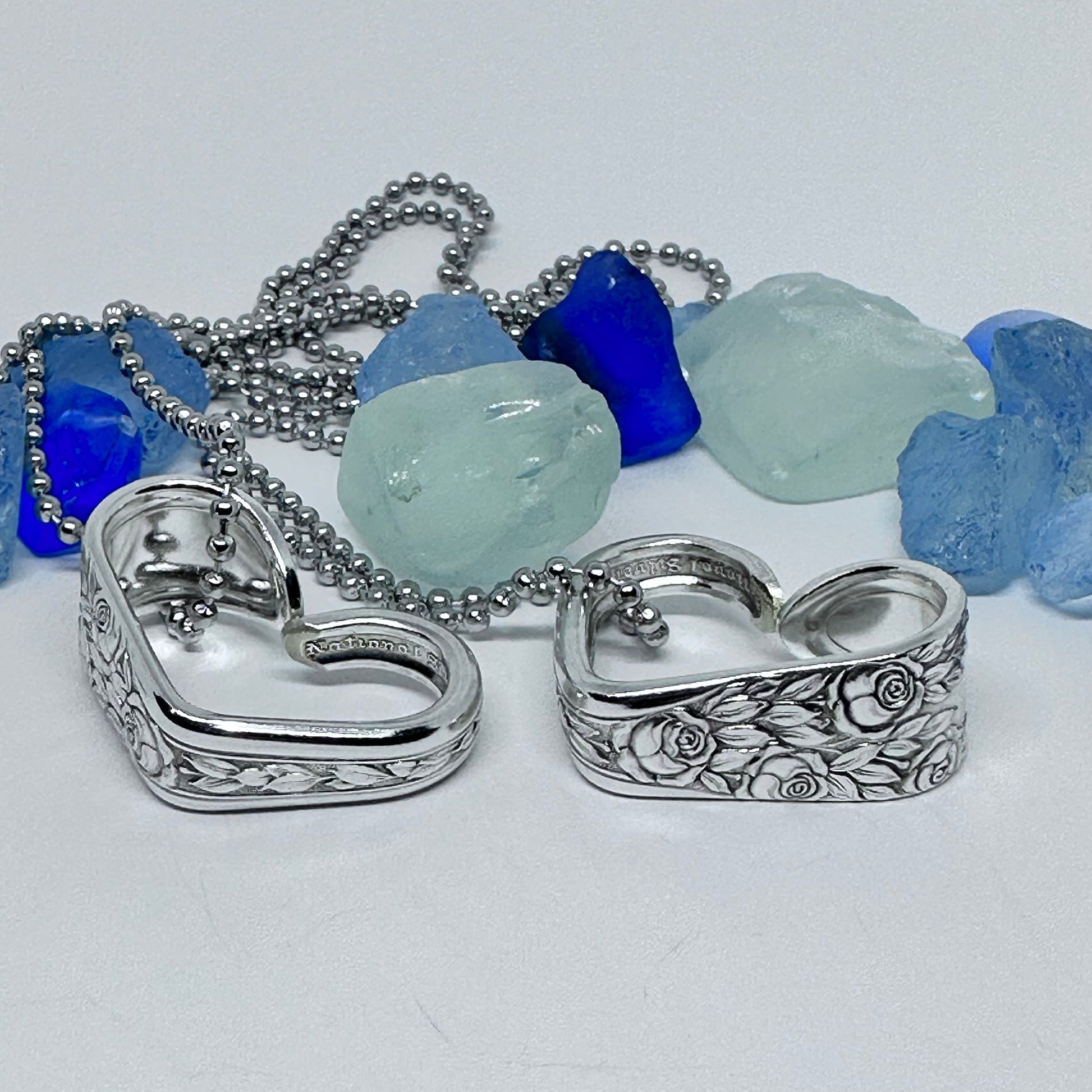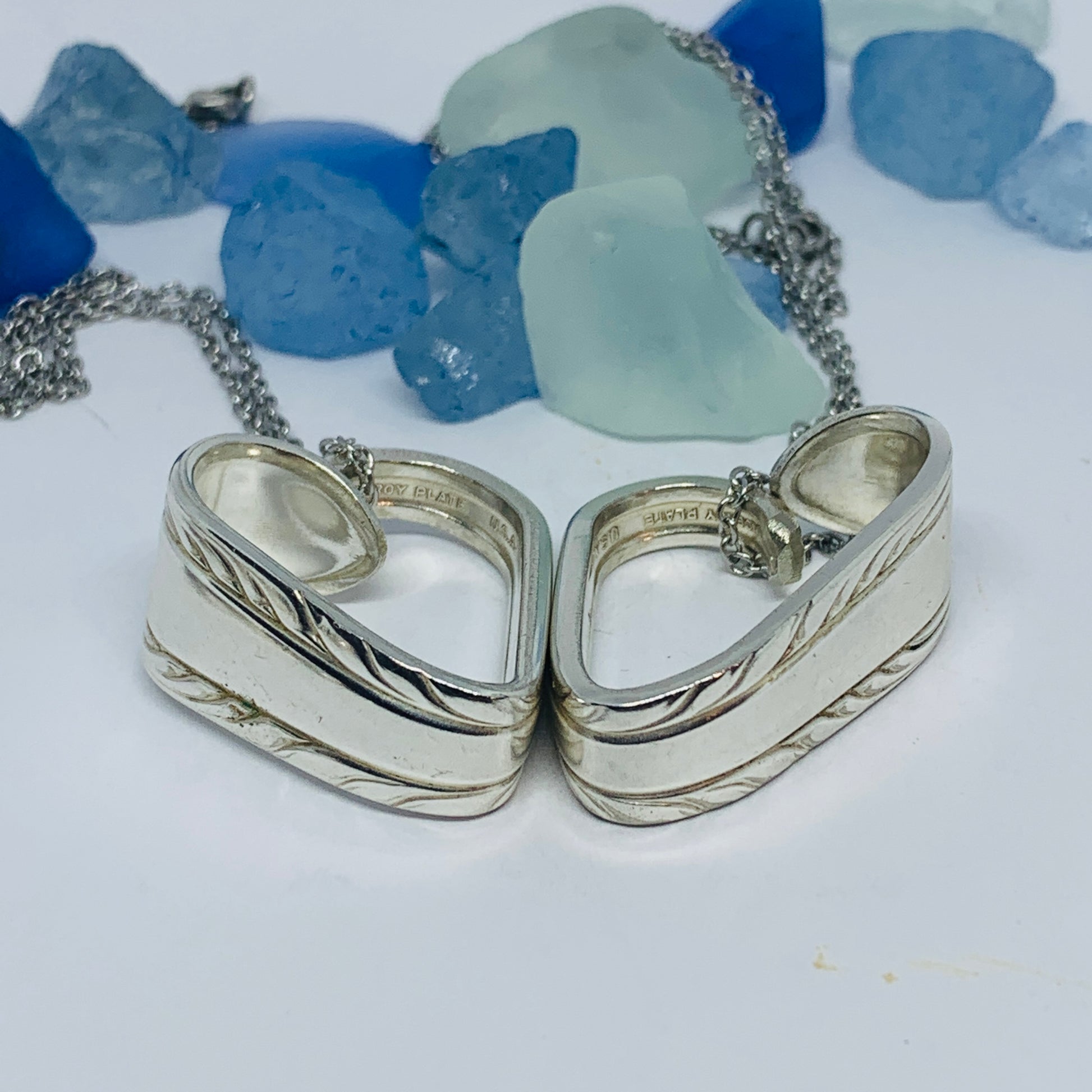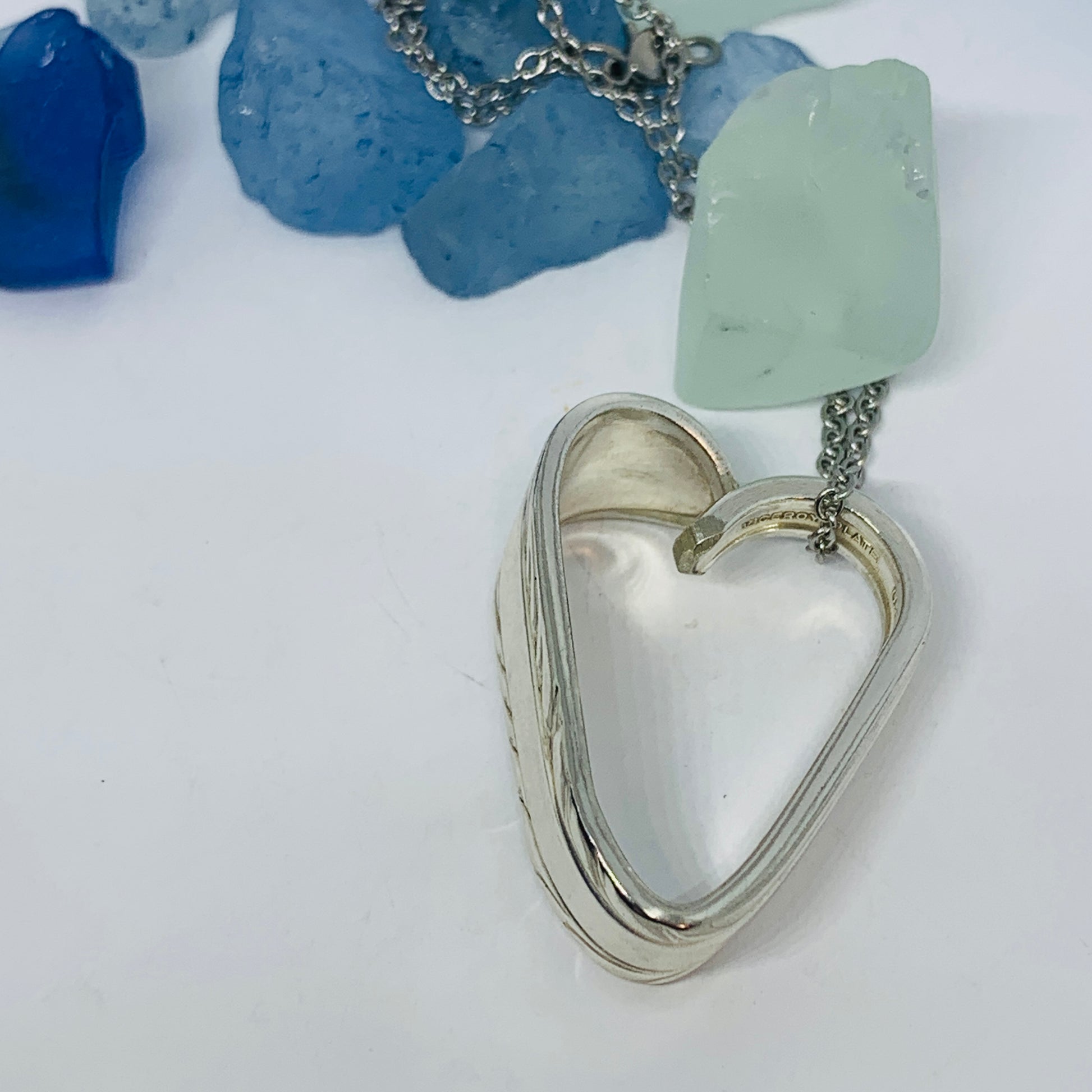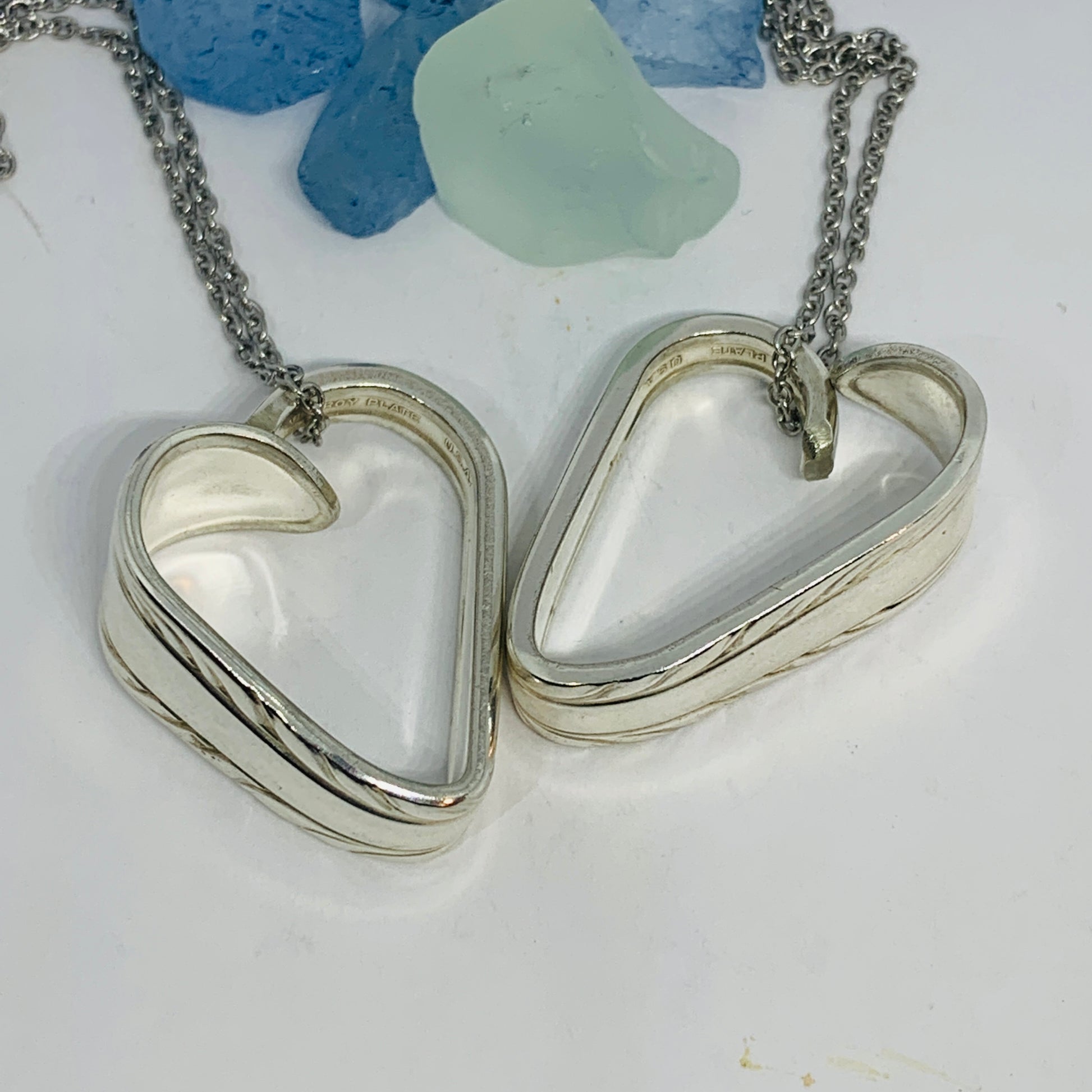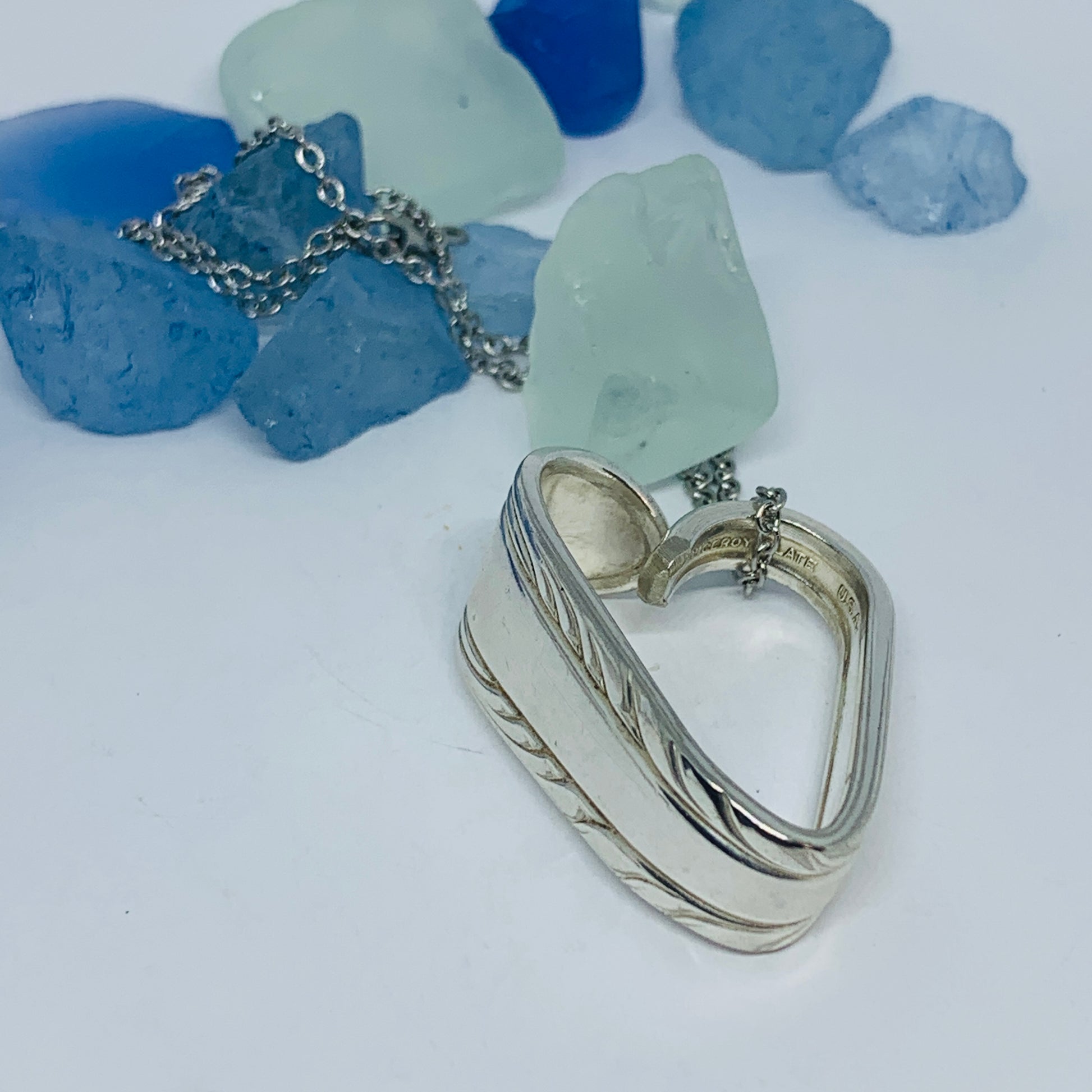 This listing is for one heart shaped vintage silverware pendant necklace on a 24” stainless steel ball chain, key ring or just put in your pocket for a pocket full of love!