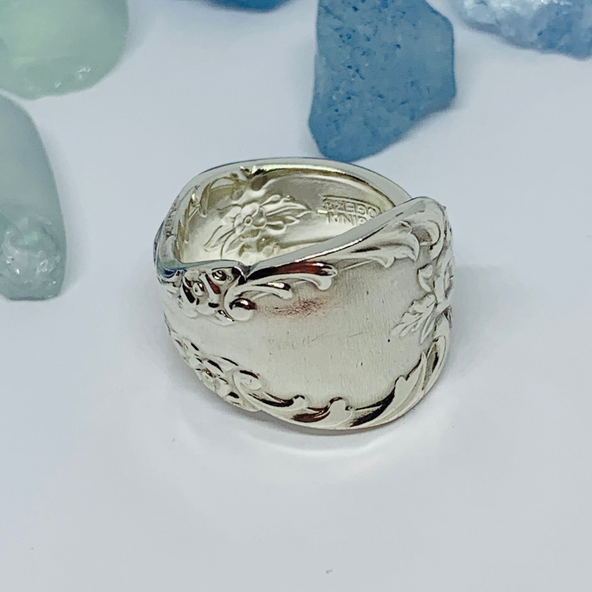 Clean, polish, cut, smooth, bend, bend, cuss, bend, sweat, bend, hammer, tumble, patina, buff. Sound easy? It’s painstakingly difficult but the end result … beautiful and unique! You can expect to see signs of its age and prior use.